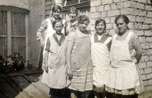 AmWiedischen Hof um 1928 – h.r. Gertrud Pütz, vorne links Stoffels Traut